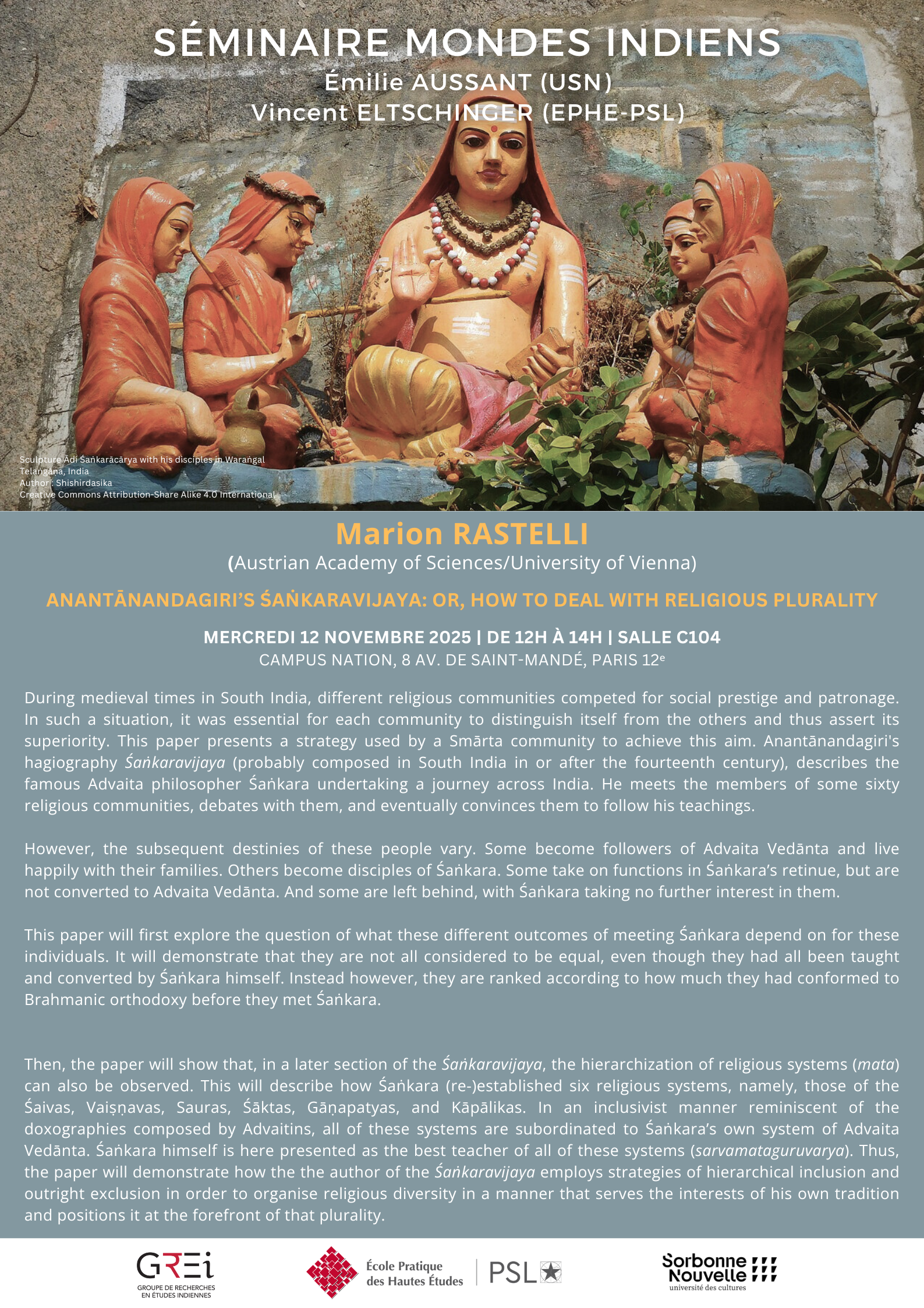- Organisateurs : Émilie Aussant (USN) et Vincent Eltschinger (EPHE-PSL)
